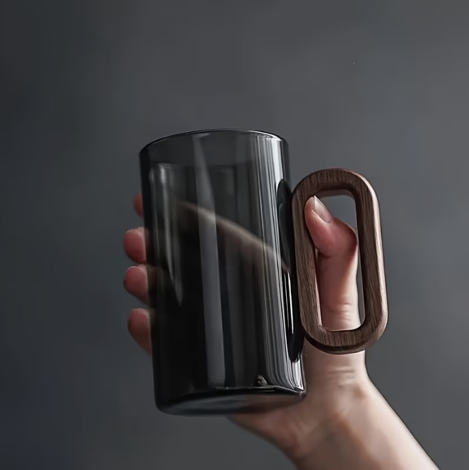 - 2 borosilicate glass cups with wooden handles.